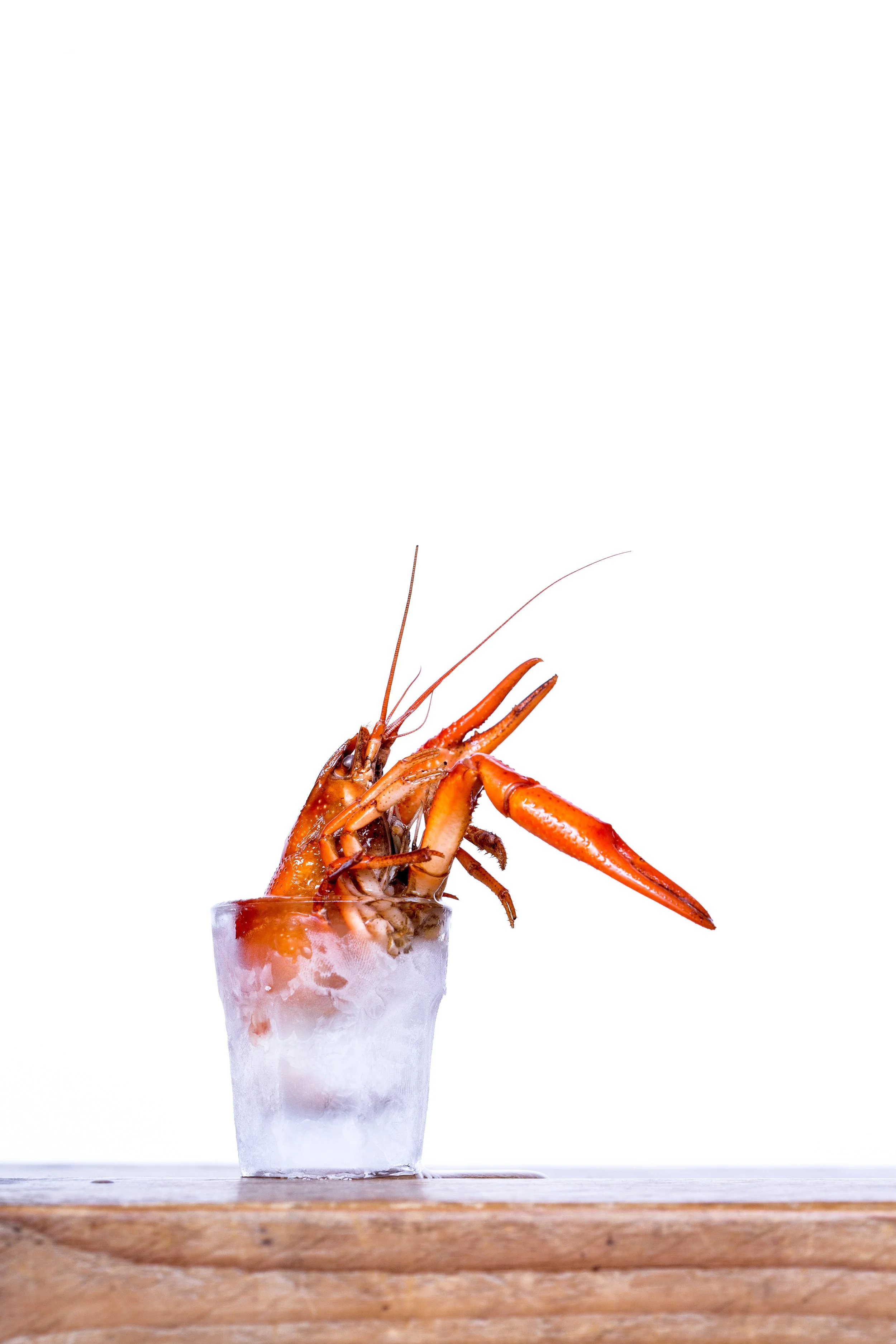 Crayfish in vodka glass.